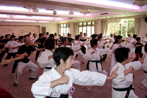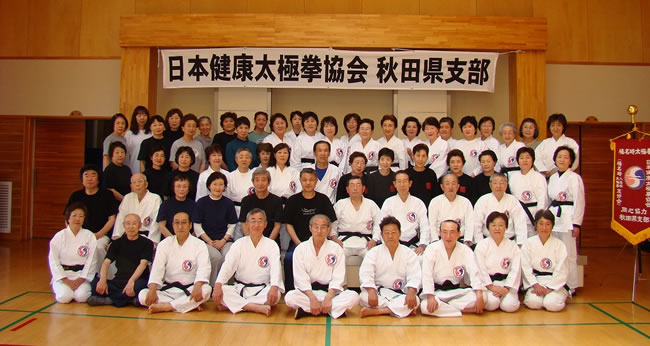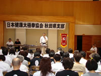 秋田県支部の第5回通常総会交流会が平成21年度6月14日(月)大館市のサンクレア大館にて開催されました。当日は好天に恵まれ、総会は、活発な質疑応答が行われ、役員改正等の諸議案等が承認され無事終了しました。午後は、健康太極拳の全員演舞と百花拳の講習が行われました。さわやかな汗をかき、楽しく終了しました。