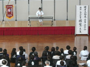 平成23年6月26日秋田市アルヴェにおいて、全県から会員約100名の出席のもと、日本健康太極拳協会秋田県支部第7回通常総会が開催され、平成23年度の支部活動方針の決定、新役員の選任等が行われました。 支部長には、これまで6年間にわたり重責を果たしてきた齊藤節雄氏に代わり、秋田地区の青山鈞氏が新たに選任されました。 総会終了後は日本健康太極拳協会副理事長の楊慧先生による、「太極拳の心」をテーマとした講演及び太極拳二十四式の実技指導が行われ、見学者も参加するなか盛況な特別講習会となりました。